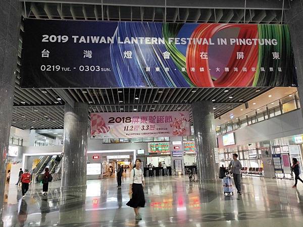 屏東火車站現在好熱鬧,大廳兩旁已有商店進駐,走出火車站左轉到轉運站來搭農博接駁車熱博活動期間1月29至2月27(除夕休園)可搭火車到屏東轉運站搭乘接駁車至園區,15分鐘一班車次很頻繁,每人10元投幣,不能使用一卡通喔,2歲以下65歲以上長者免費,入園免費。停車場酌收100元停車費,機車30元搭車20分就到達園區,1月29開幕趁休假避開人潮先來逛逛,入園這座貨櫃屋彩繪很繽紛也是觀景台入口處就看見花海和巨大火紅燈籠,充滿過年喜氣洋洋氣氛今年30公頃熱博園區規劃迎春花海、水果公園、瓜果長廊等27大主題區,逛一天剛好水果公園好可愛喔,小朋友一定很喜歡全台最長的瓜廊,棚架上佈滿各式各樣的瓜類,是農博一大亮點哇哇~五顏六色的傘在藍天晴空下太美了,又是打卡亮點也是殺記憶體的場景,傘傘動人走來經過原住民園區,這裡有片向日葵花海正盛開